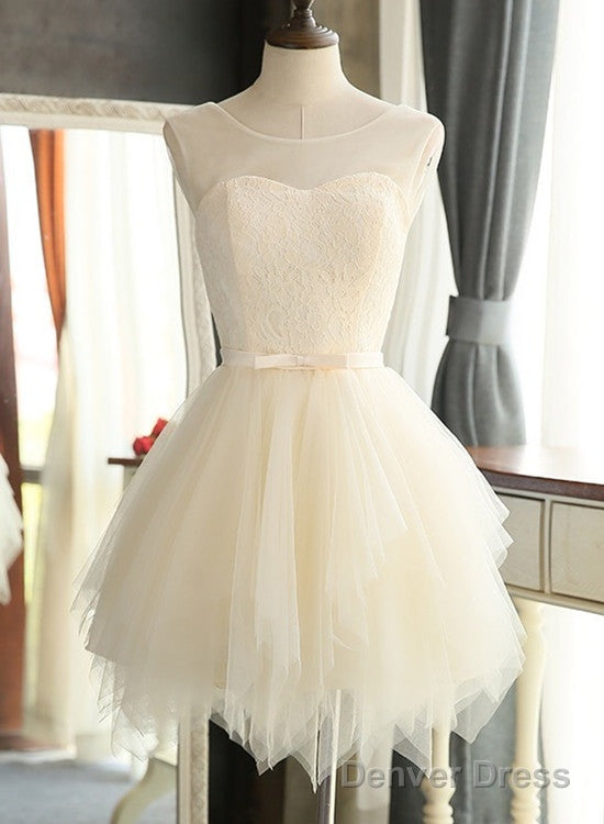 Lovely Light Champagne Short Tulle Party Dress, Cute Prom Dress, Homecoming Dress For Teens