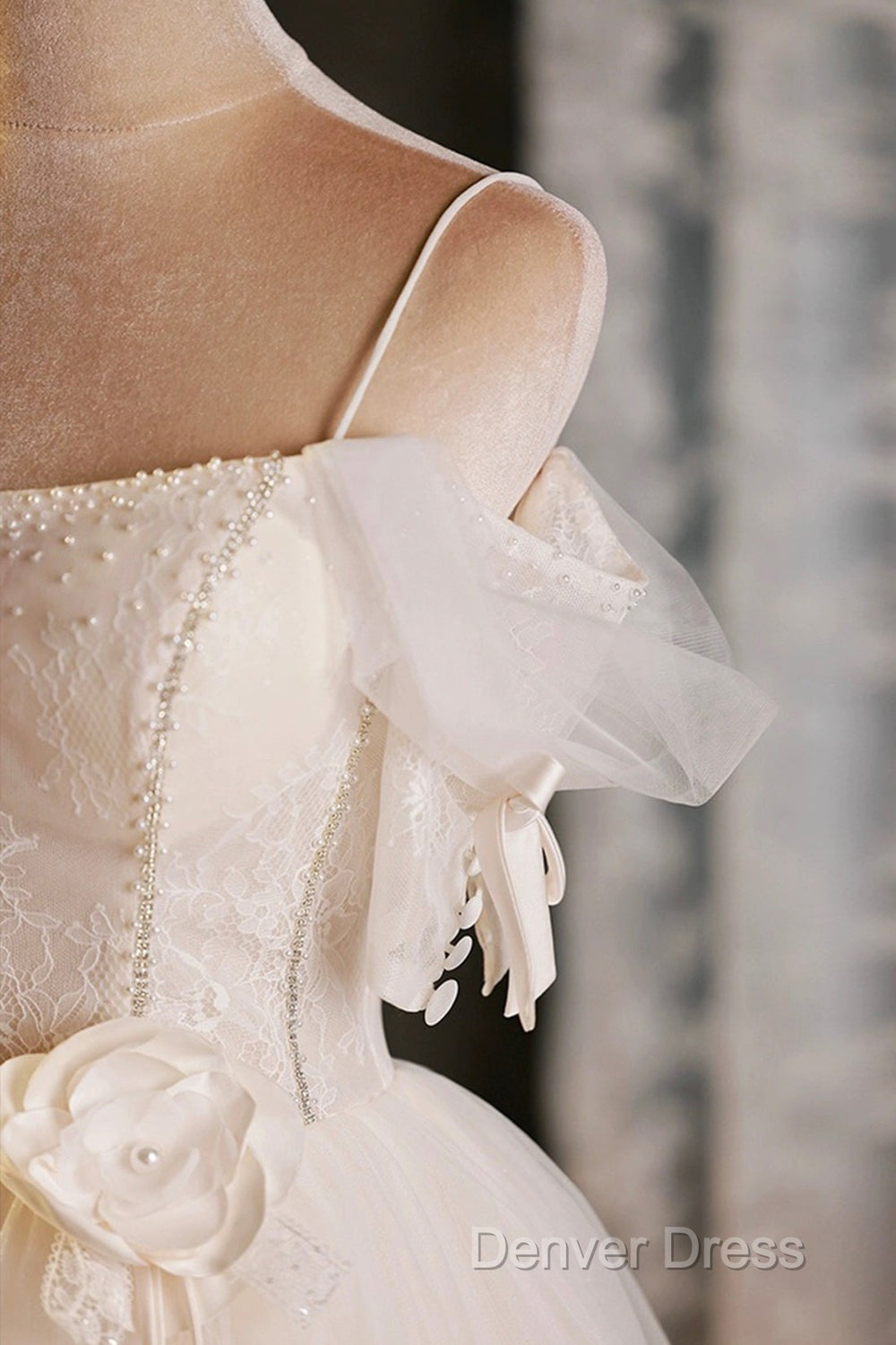 Lovely Spaghetti Strap Tulle Short Prom Dresses, Light Champagne A-Line Evening Party Dresses