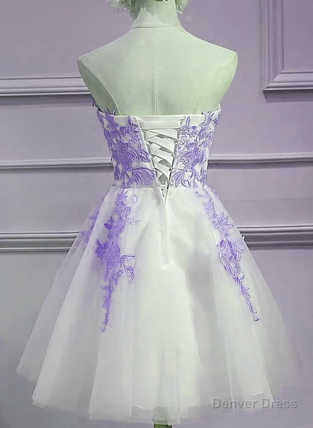 Lovely Sweetheart White Tulle With Purple Lace Cute Party Homecoming Dress