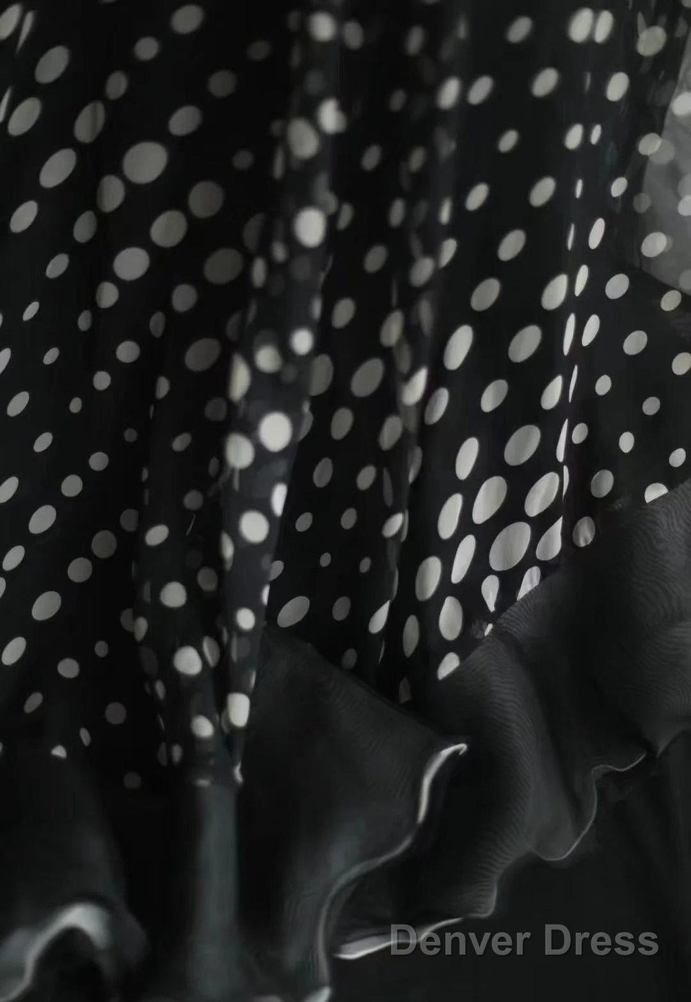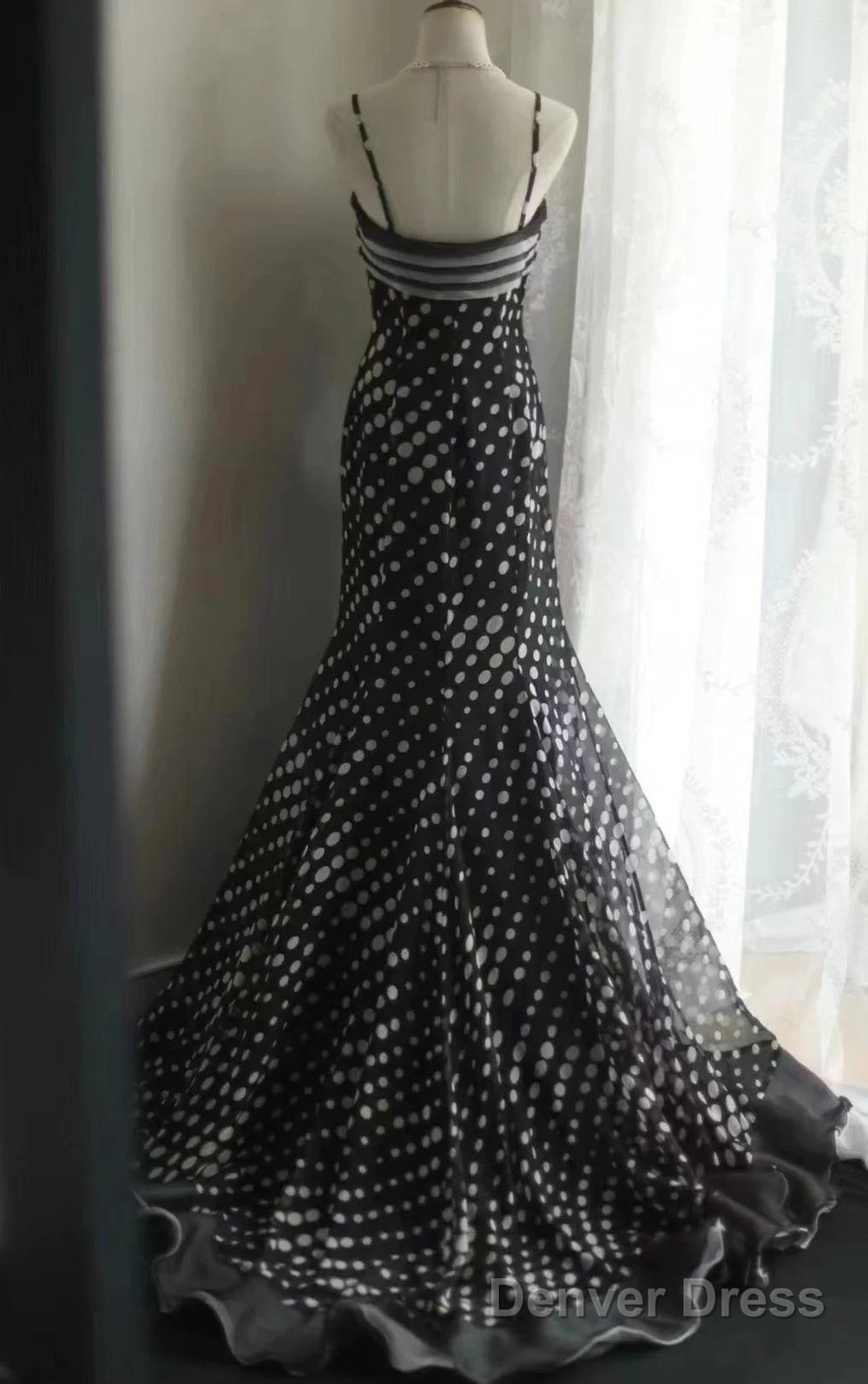 Mermaid Black Spaghetti Strap Chiffon Long Prom Skirt Polka Dot Evening Dress
