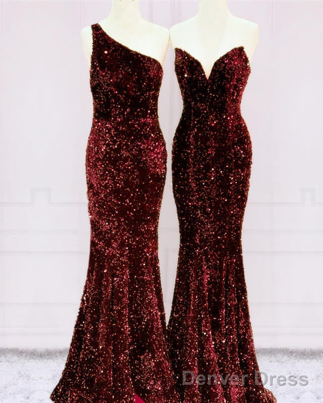 Mermaid Burgundy Sequins Bridesmaid Dresses