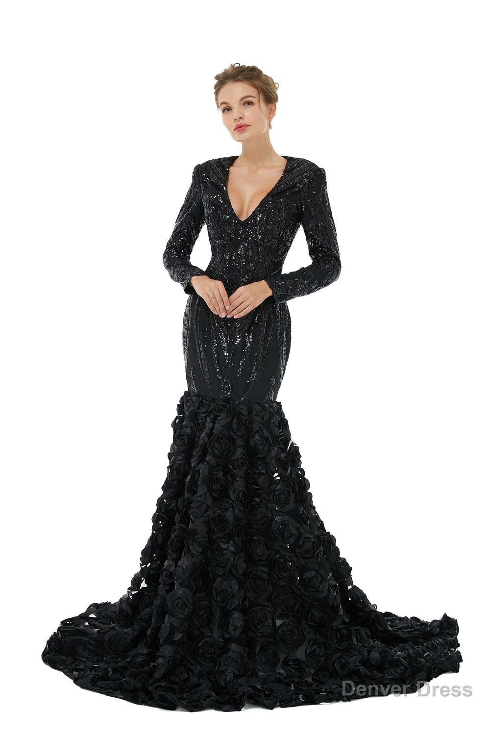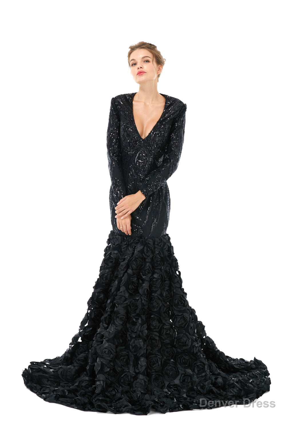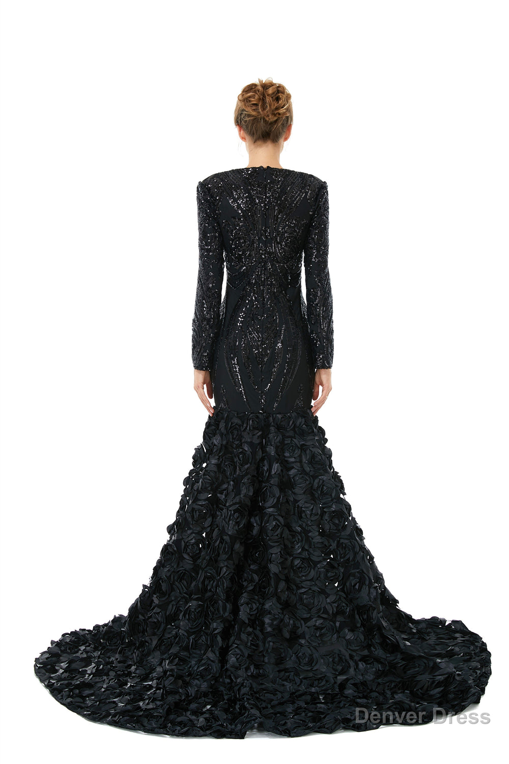 Mermaid Long Sequined Bling Full Sleeves Floral Skirt Prom Dresses