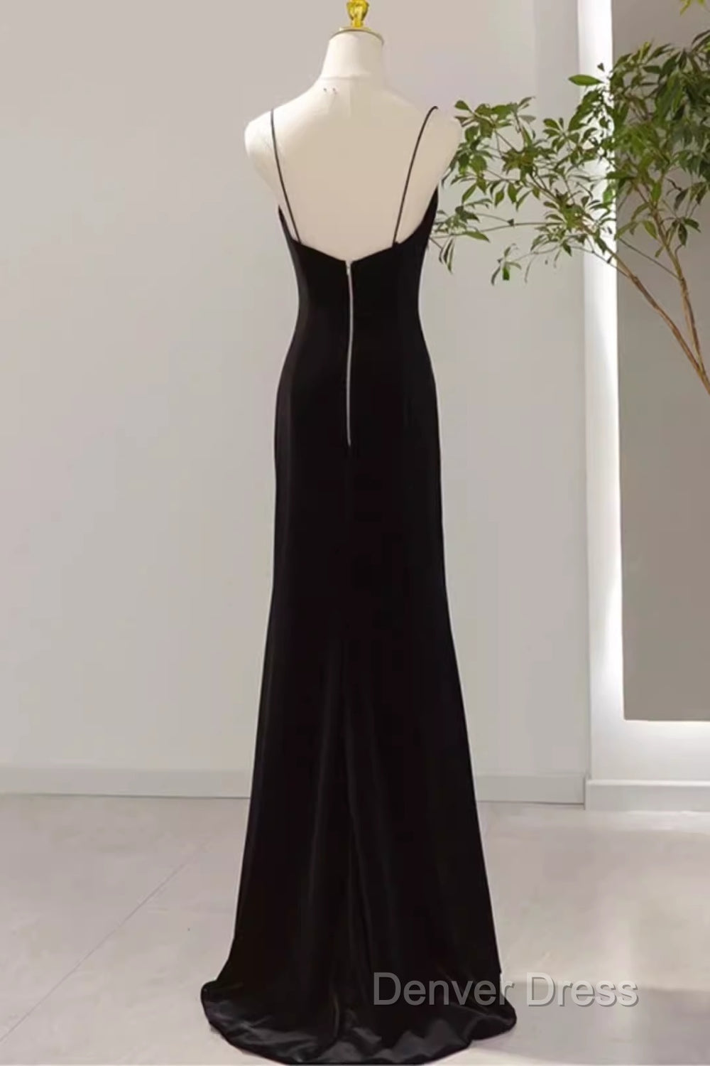 Mermaid Straps Black Velvet Long Prom Dresses