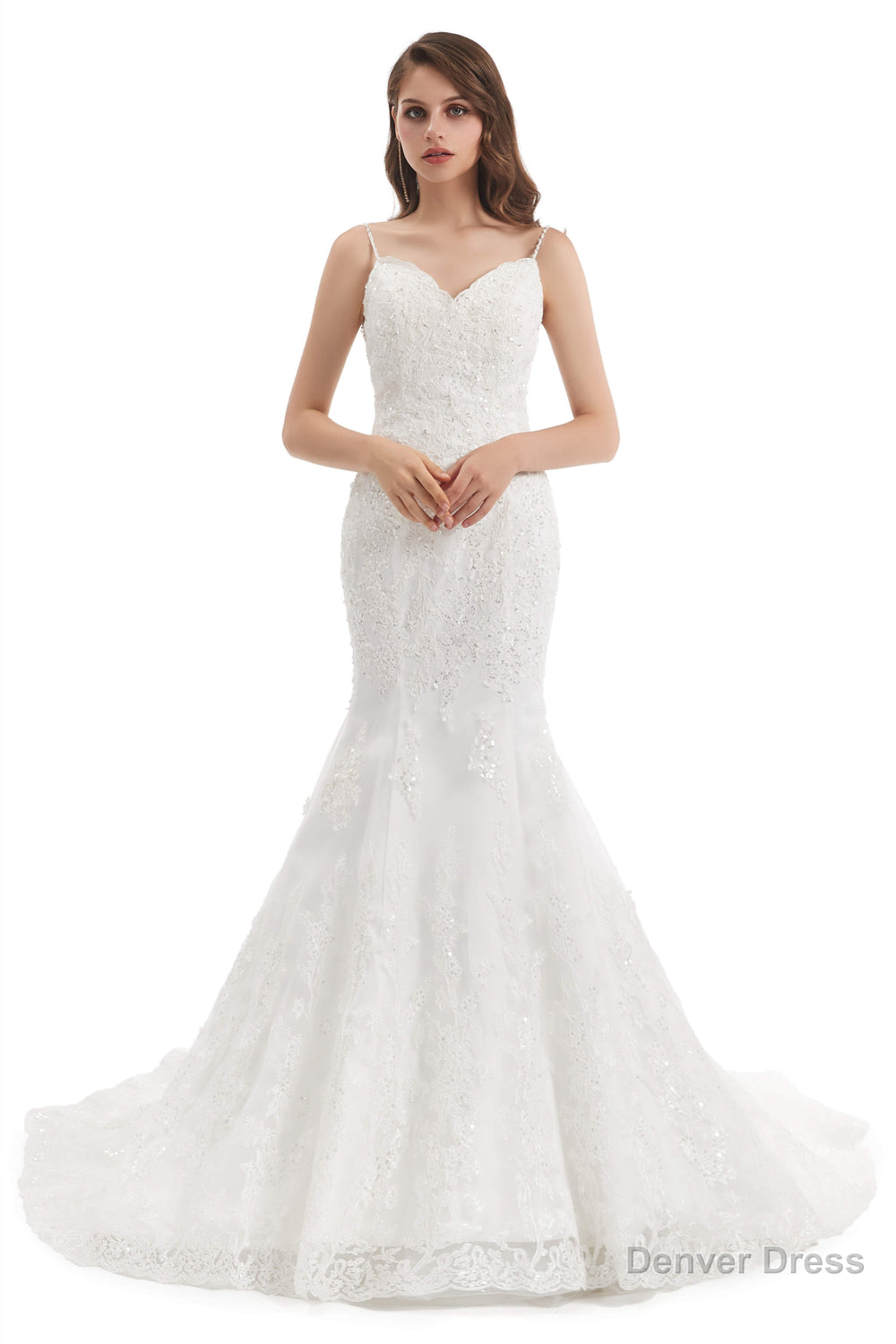Mermaid Tulle Appliques Sequins Spaghetti Straps Wedding Dresses
