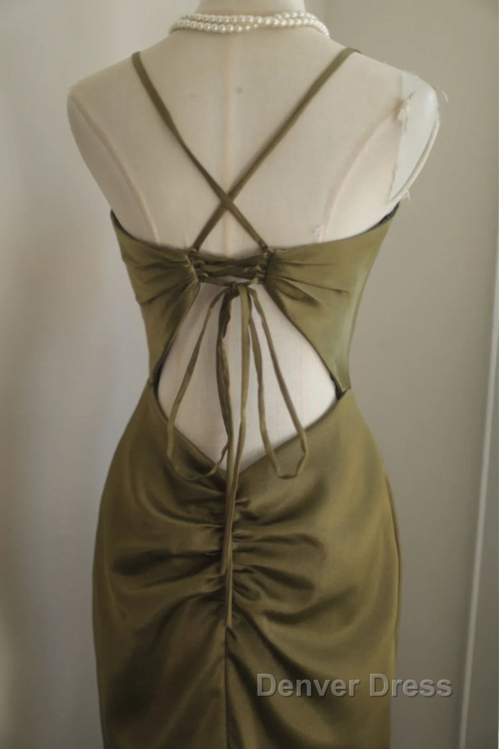 Mermaid V-Neck Satin Long Prom Dresses Elegant Spaghetti Strap Formal Dresses