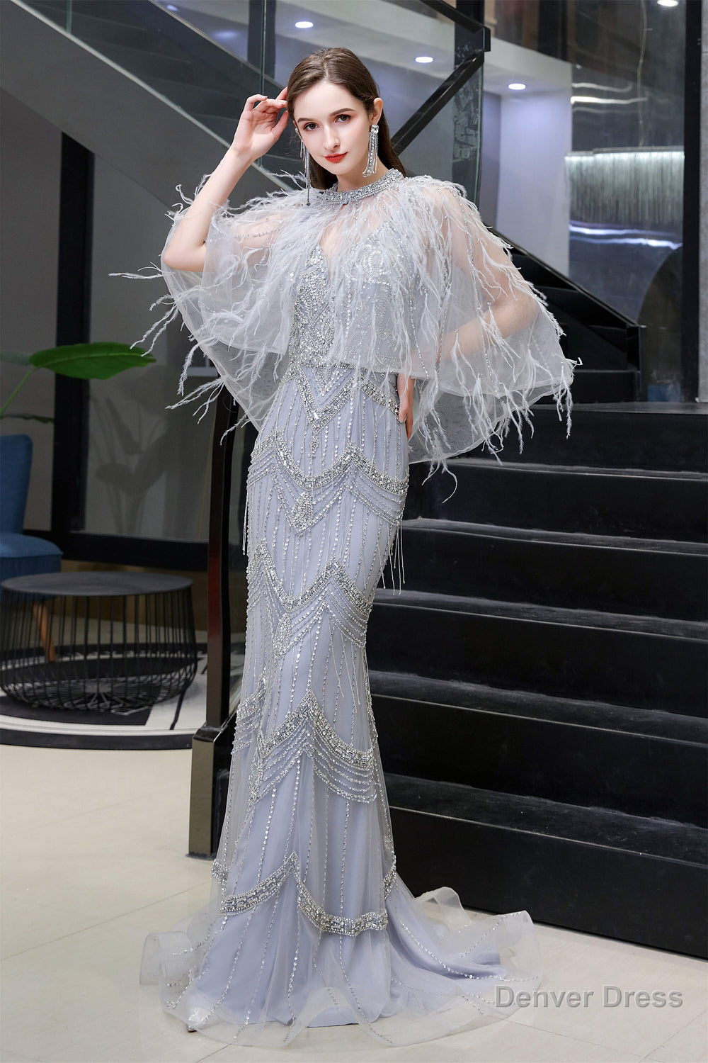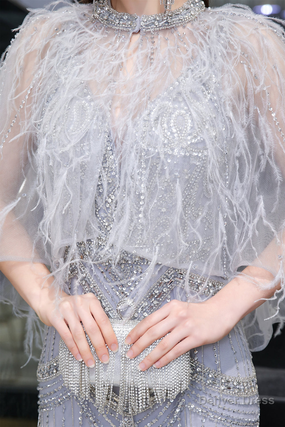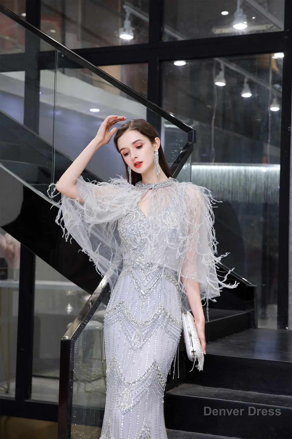 Mermaid V Neck Sleeveless Floor Length Prom Dresses With Crystal Beading