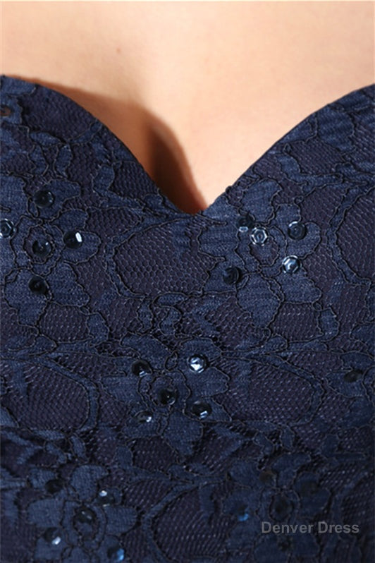 Navy Blue Chiffon Sweetheart Lace Beading Prom Dresses