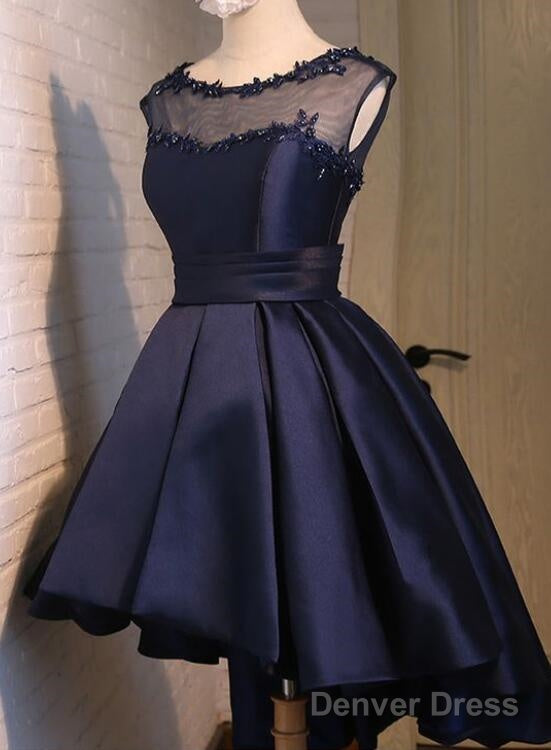 Navy Blue High Low Homecoming Dresses, Lovely Teen Formal Dress, Evening Party Dress Short