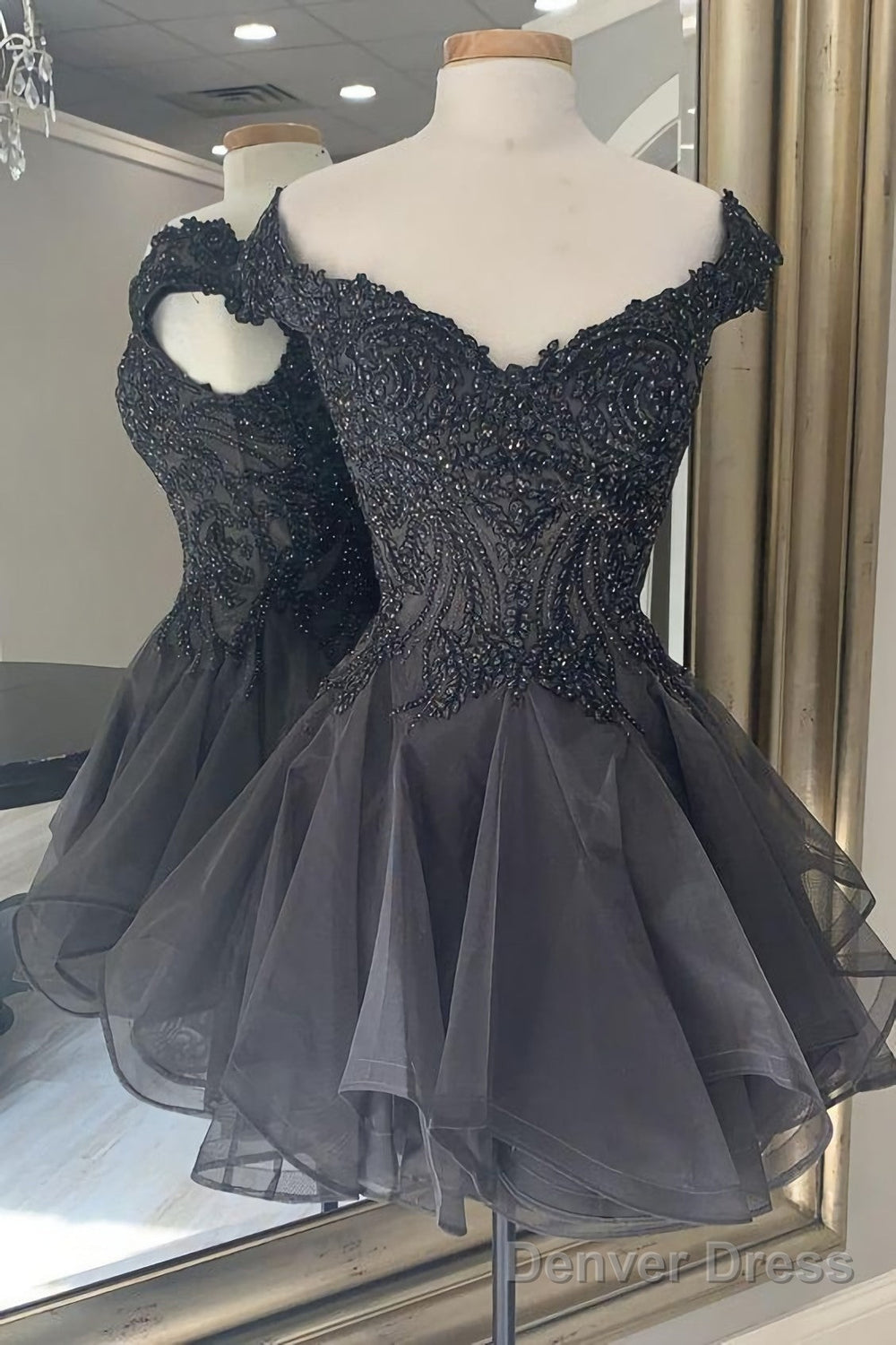 Off The Shoulder Black Short Party Dress, Homecoming Dress