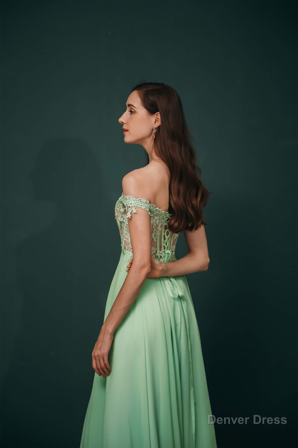 Off The Shoulder Charming Long Chiffon Prom Dresses With Appliques