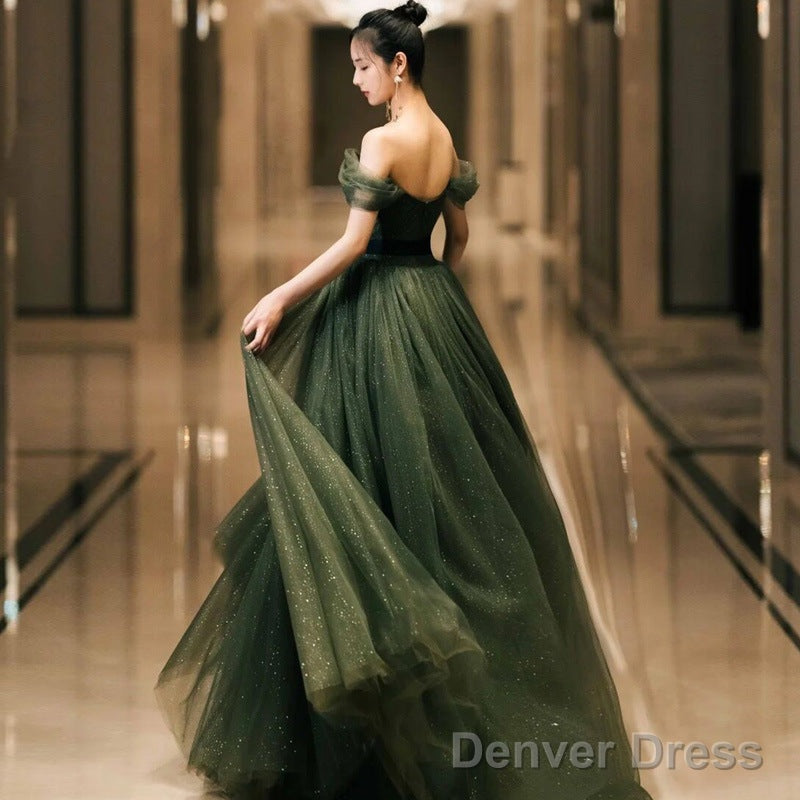 Off The Shoulder Green Tulle Prom Dress A Line Birthday Party Dress
