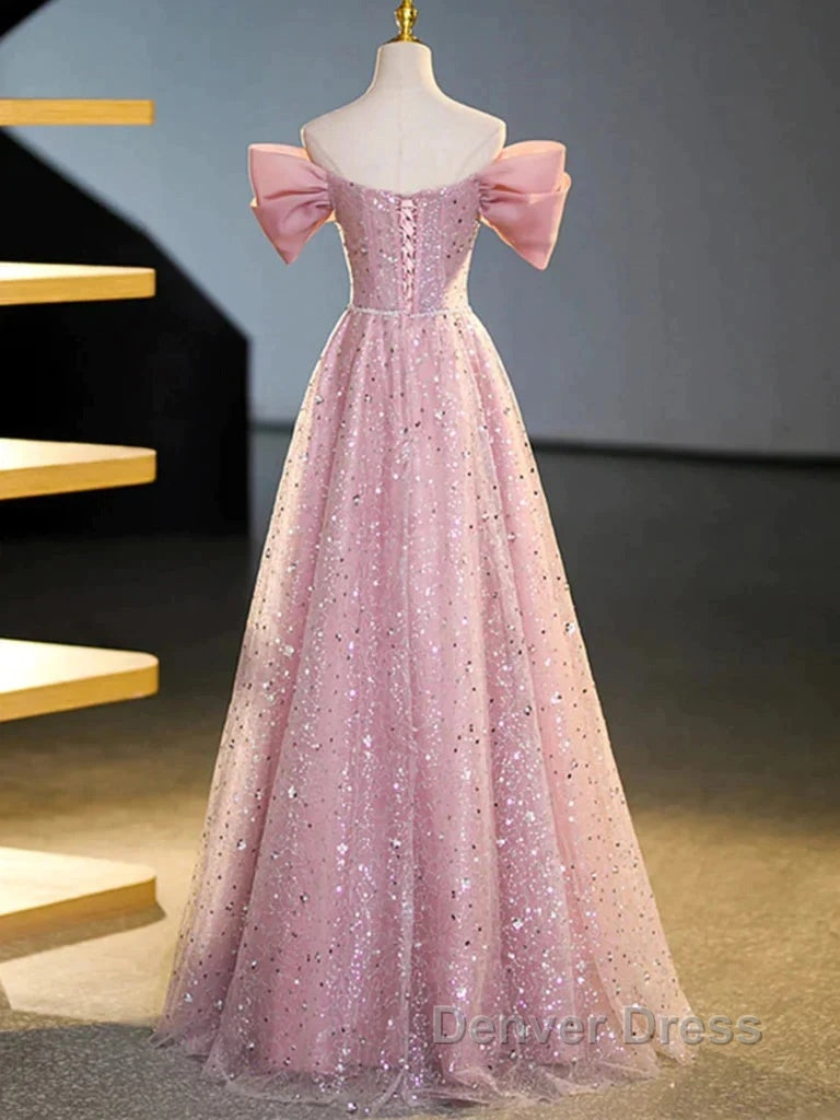 Off The Shoulder Pink Sequin Sparkle Prom Dresses