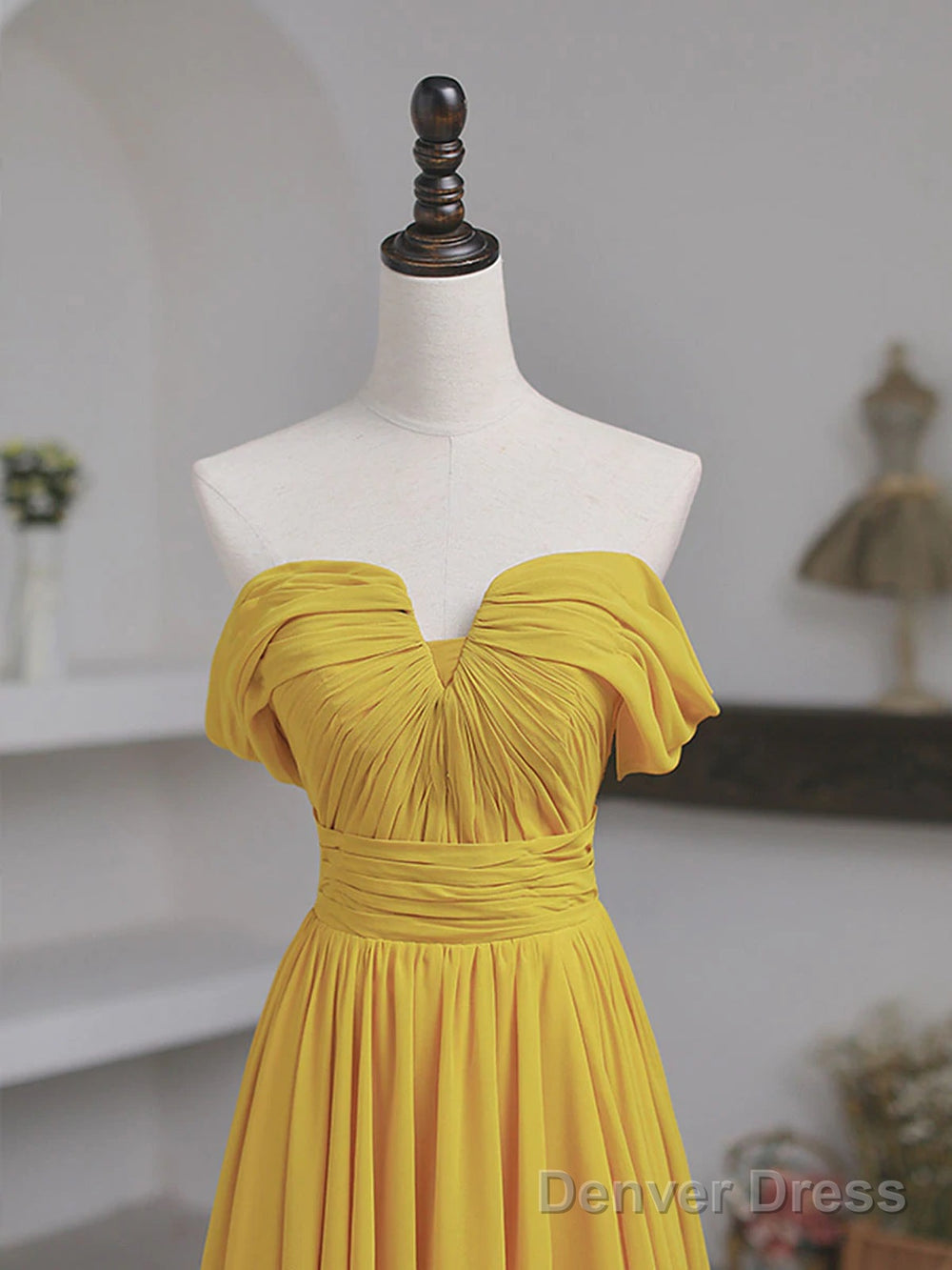 Off The Shoulder Yellow Chiffon Long Prom Dresses, Yellow Long Formal Bridesmaid Dresses