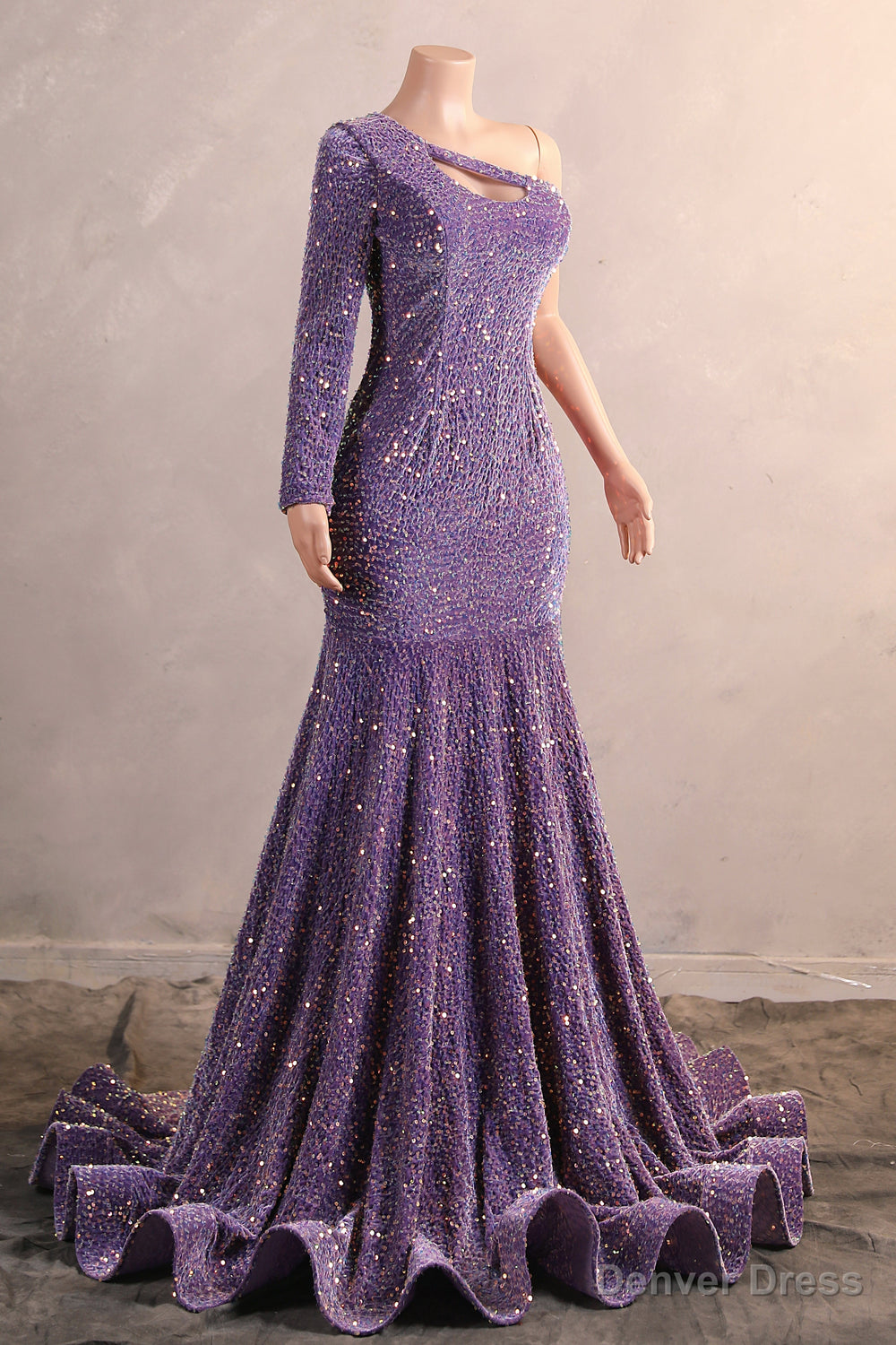 One Shoulder Purple Prom Dresses Sequin Mermaid Long Evening Formal Dresses