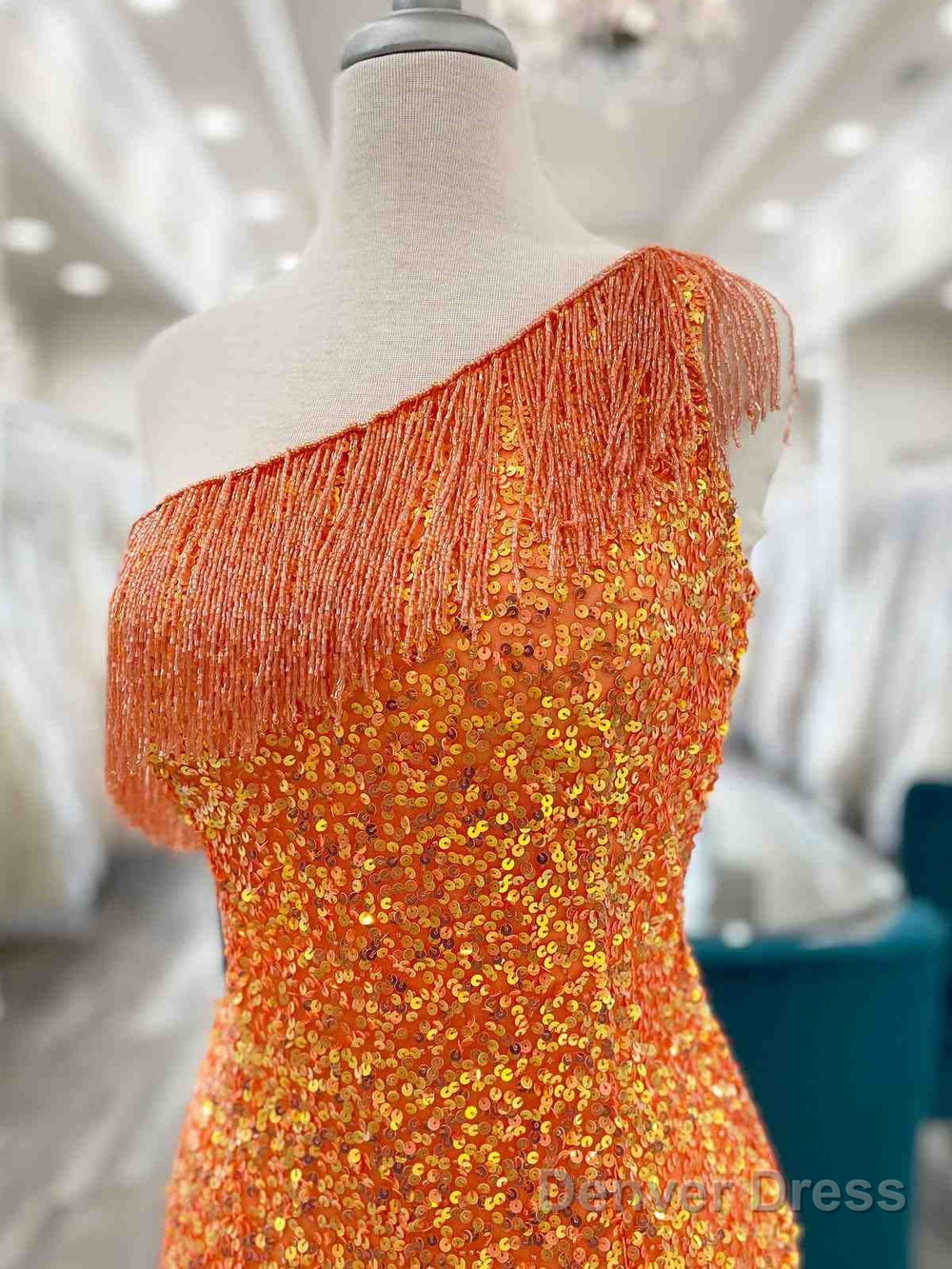 One Shoulder Short Tight Orange Blue Prom Dresses, One Shoulder Short Formal Homecoming Dresses