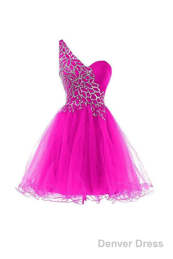 One Shoulder Tulle Homecoming Dresses Short Prom Dresses With Beading