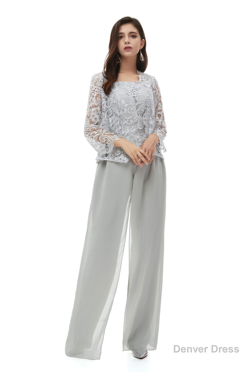 Pant Suits Lace Bateau Neckline Long Sleeves Mother Of The Bride Dresses
