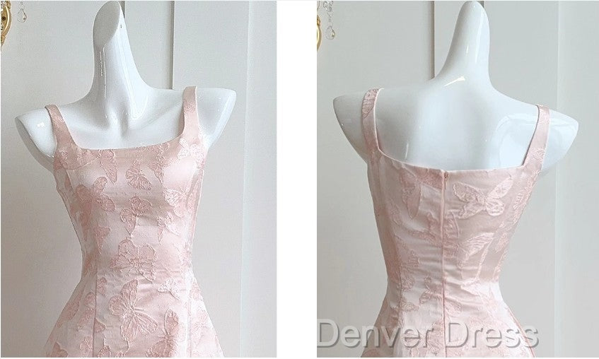 Pink A-Line Vintage Butterfly Embroidered Satin Prom Dresses Birthday Dressesed01772
