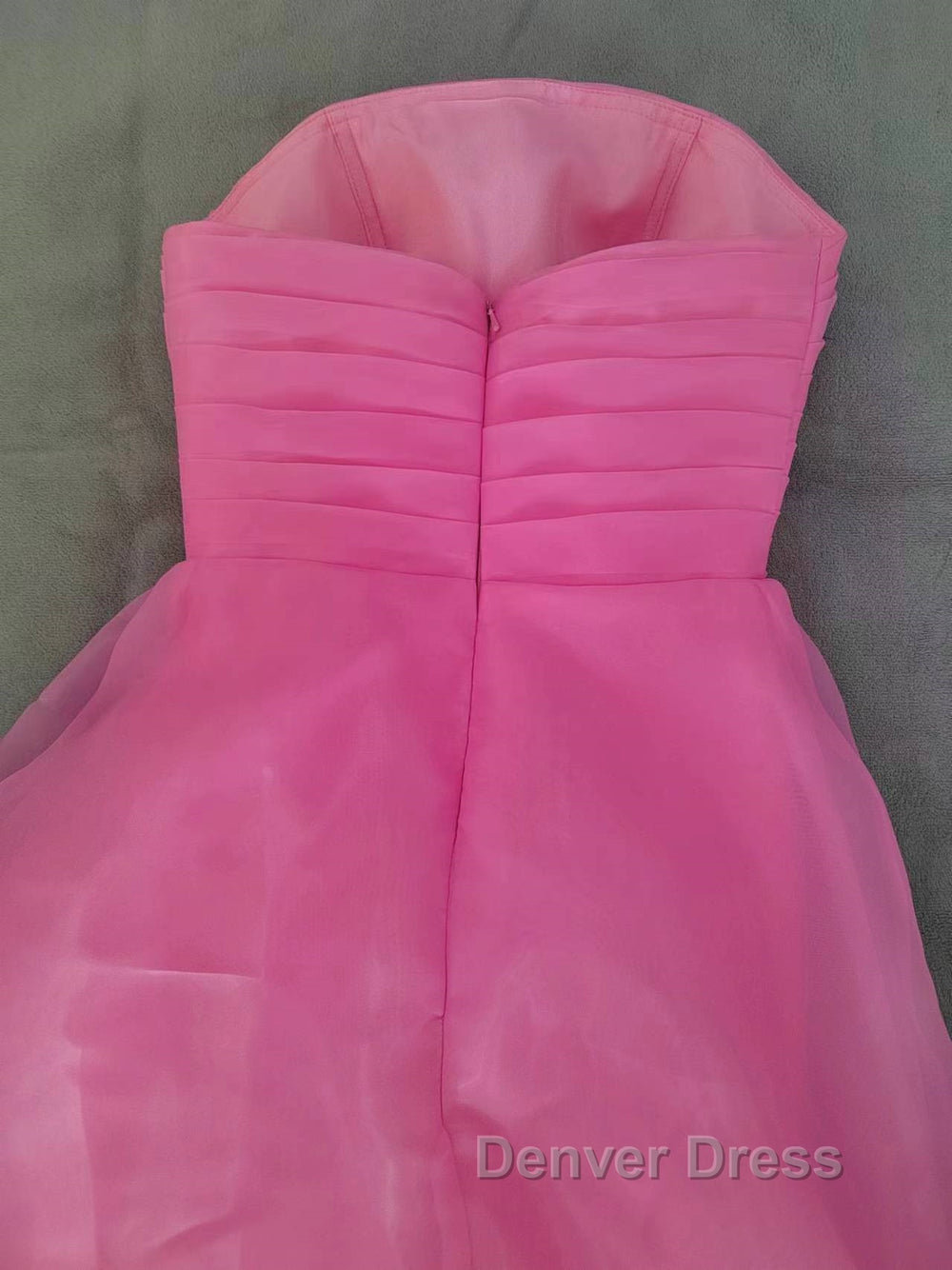 Pink Prom Dresses Tulle Evening Gown Strapless Ruffles A-line Simple Prom Dresses For Teens