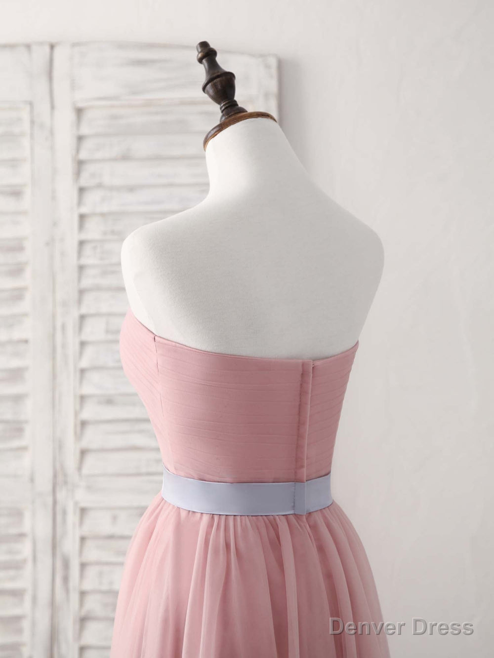 Pink Sweetheart Neck Tulle Long Prom Dress, Aline Pink Bridesmaid Dress