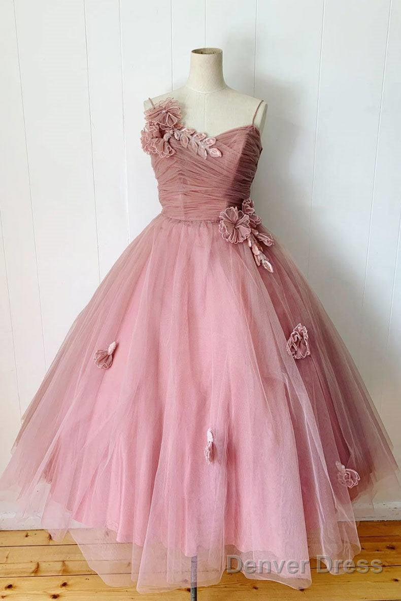 Pink Sweetheart Tulle Tea Length Prom Dress Bridesmaid Dress