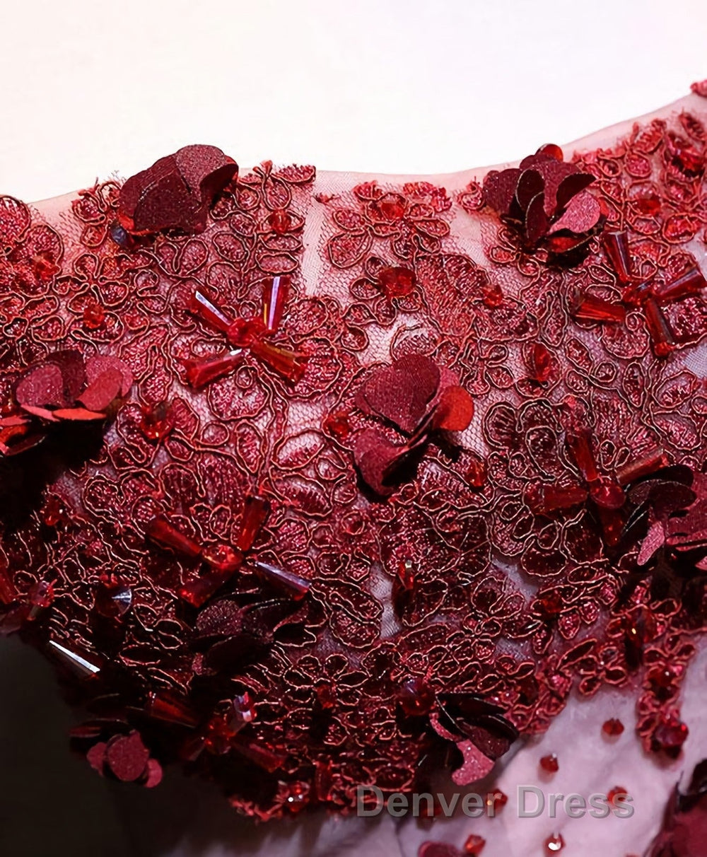 Pink Tulle Lace Applique Long Prom Dresses, Evening Dresses