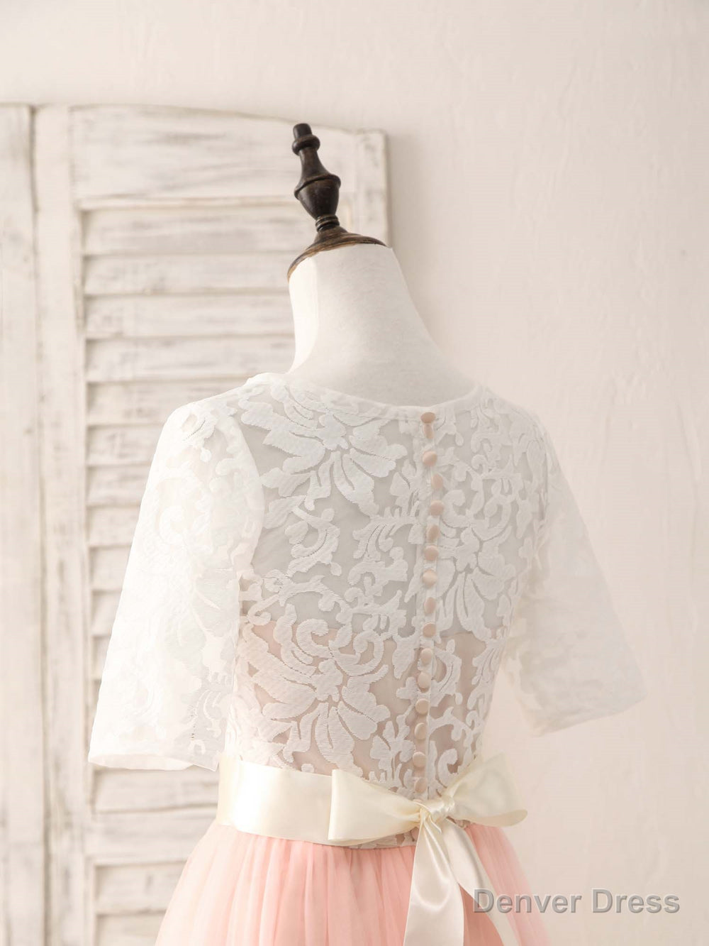 Pink Tulle Lace Long Prom Dress Pink Bridesmaid Dress