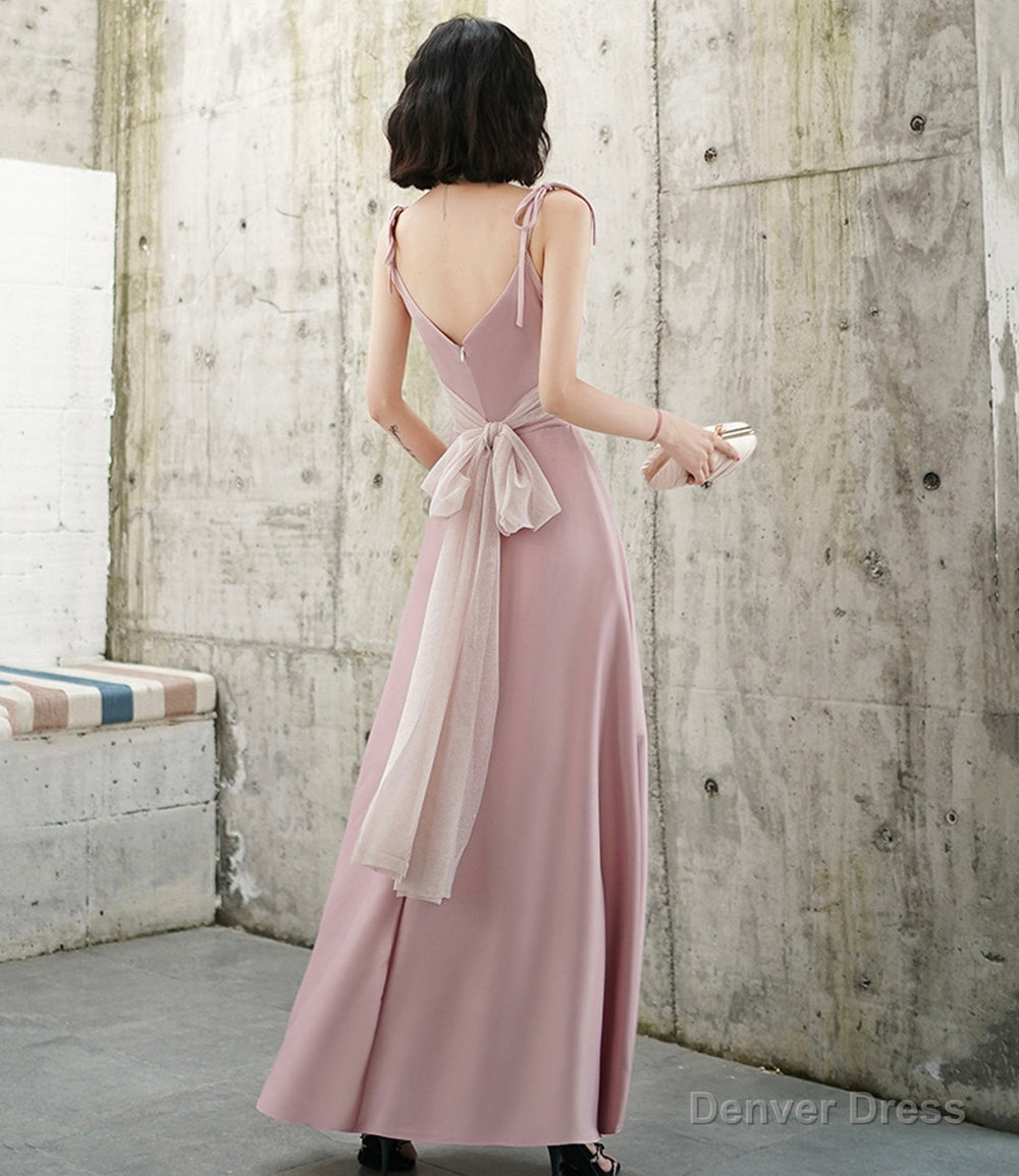 Pink V-neck long prom dress A-line evening dress