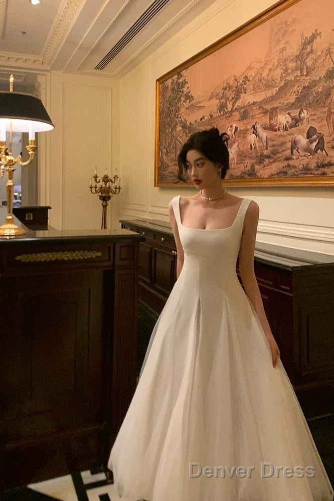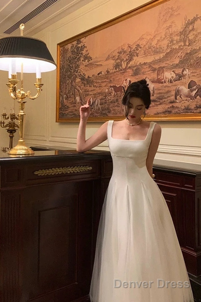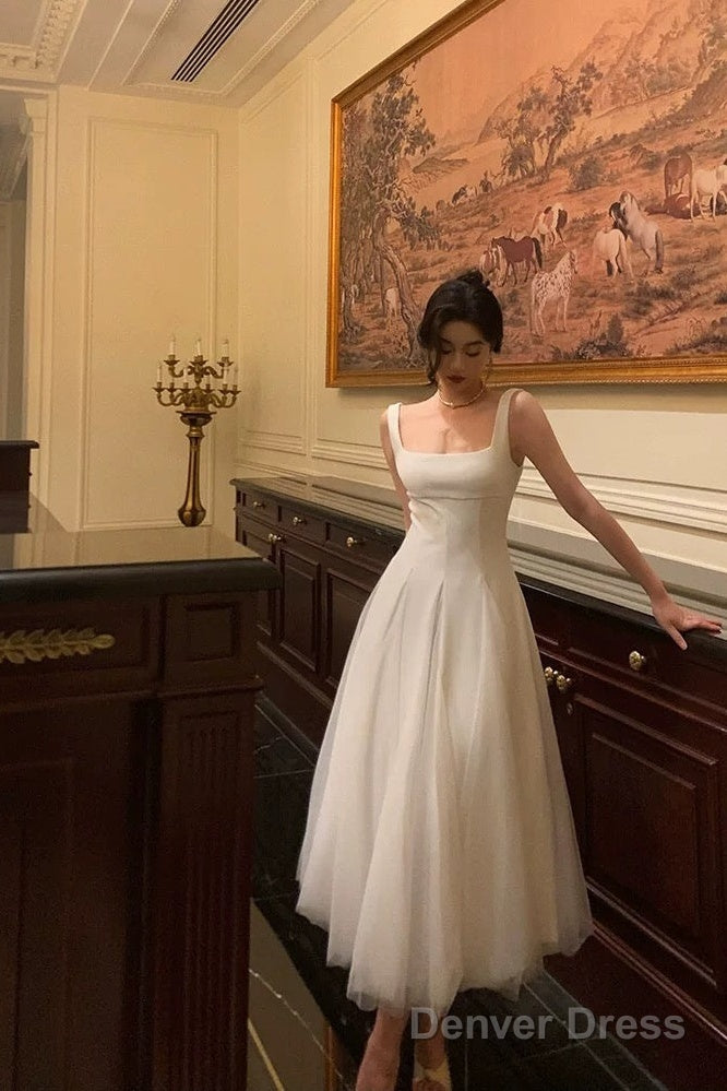 Pretty A Line Straps Sleeveless White Tulle Date Night Dress Prom Dresses Birthday Outfits