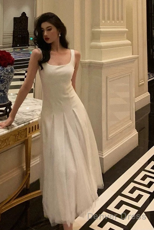 Pretty A Line Straps White Date Night Dress Tulle Prom Dresses Birthday Party Outfit