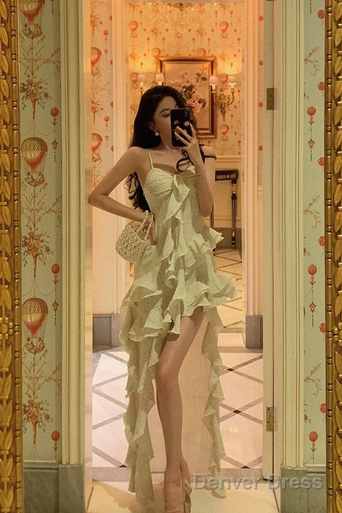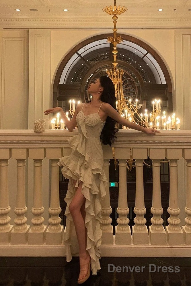 Pretty High Low Spaghetti Straps Ruffles Prom Dresses Birthday Outfits
