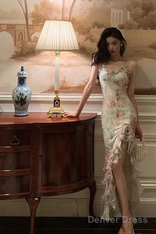 Pretty Mermaid Spaghetti Straps Pink Floral Date Night Dress Prom Dresses Birthday Party Outfit