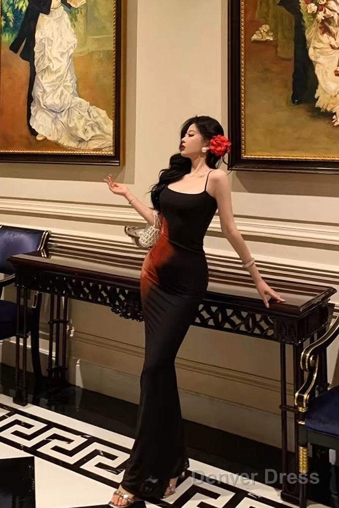 Pretty Sheath Spaghetti Straps Black Long Prom Dresses Birthday Outfits Evening Gown