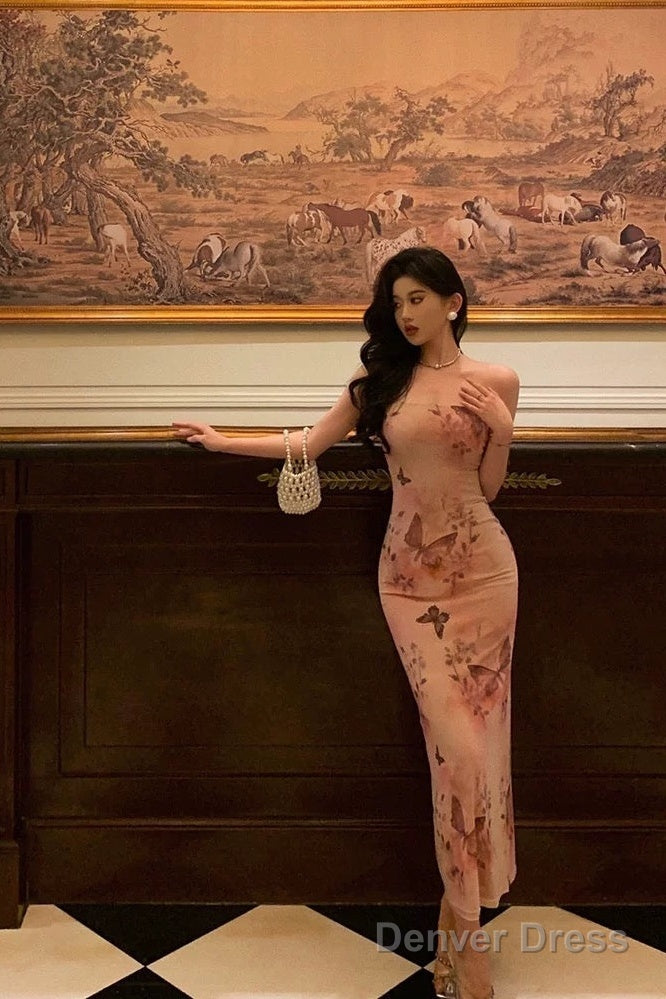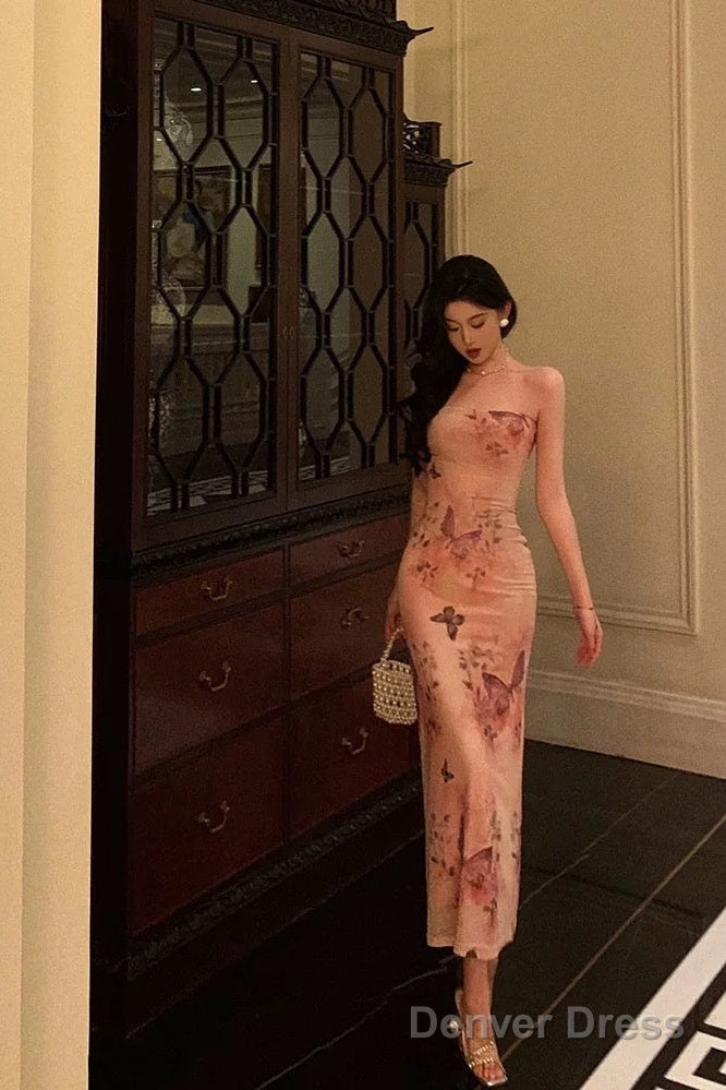 Pretty Sheath Strapless Pink Floral Date Night Dress Prom Dresses Birthday Party Outfit