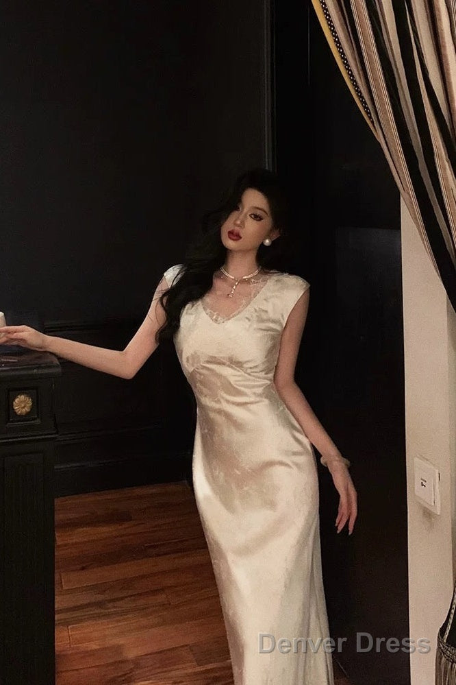 Pretty Sheath V Neckline Satin Floral Prom Dresses Birthday Outfits Evening Gown