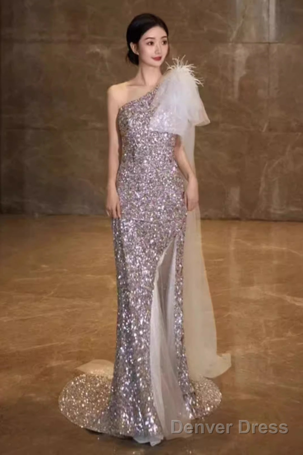 Princess Mermaid One Shoulder Party Dresses Sequin Lilac Prom Dresses