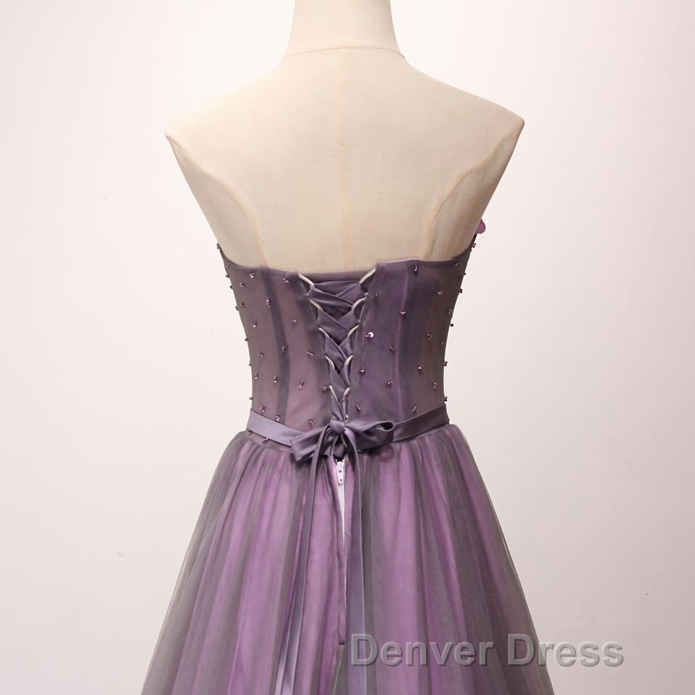 Pruple Tulle Sweetheart Neck Long Prom Dresses, Evening Dresses