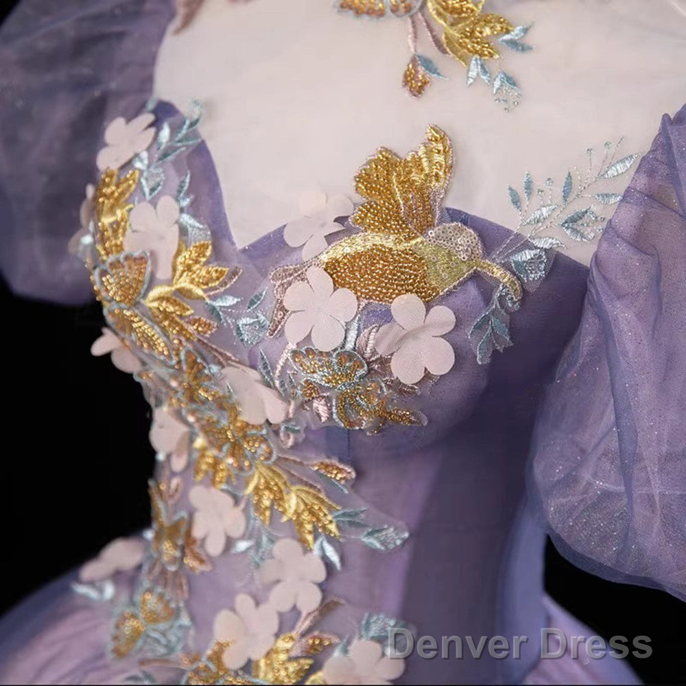 Purple And Pink Tulle High Neckline Long Party Dress, Ball Gown Tulle Sweet 16 Dress