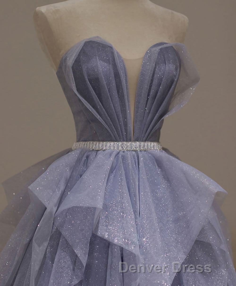 Purple Sweetheart Neck Tulle Sequin Long Prom Dresses, Tulle Formal Dresses