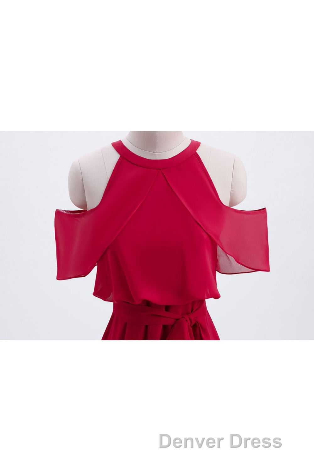 Red Chiffon Cold Sleeves Short Ruffles Bridesmaid Dresses
