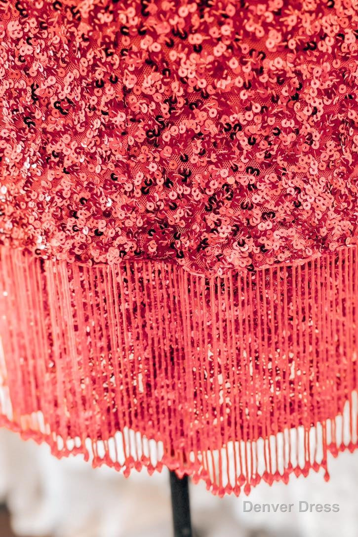 Red Lace-Up Sequins Sheath V Neck Homecoming Dress with Tassels