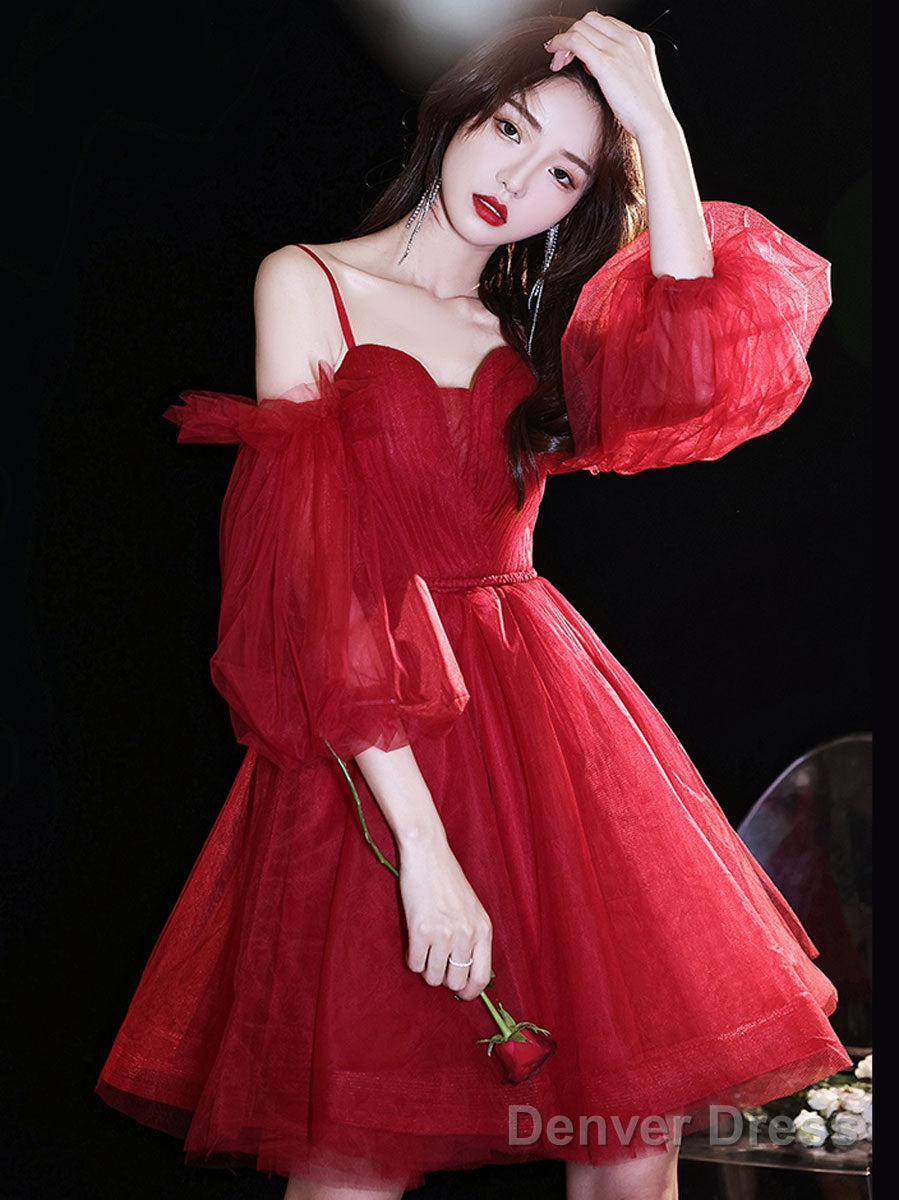 Red Sweetheart Neck Tulle Short Prom Dress Cute Homecoming Dress