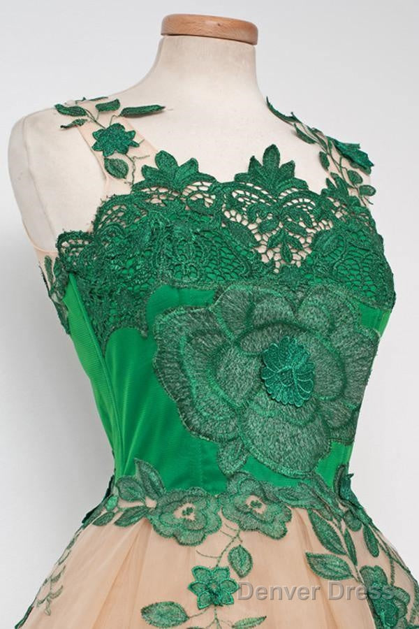 Scalloped-Edge Knee-Length Tulle Homecoming Dress With Lace Applique