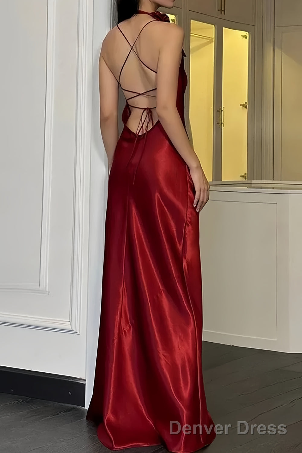 Sexy A Line Spaghetti Straps Red Floor Length Backless Prom Dresses