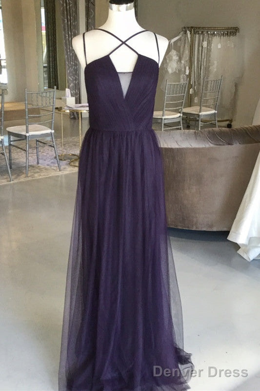 Sexy Spaghetti Straps Long Tulle Cross Back Bridesmaid Dresses