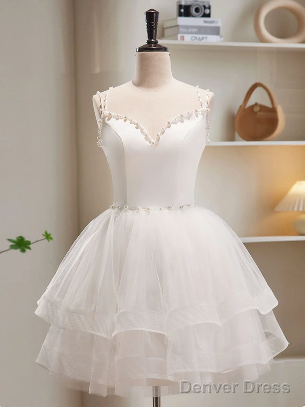 Short White Tulle Prom Dresses, Short White Tulle Homecoming Graduation Dresses