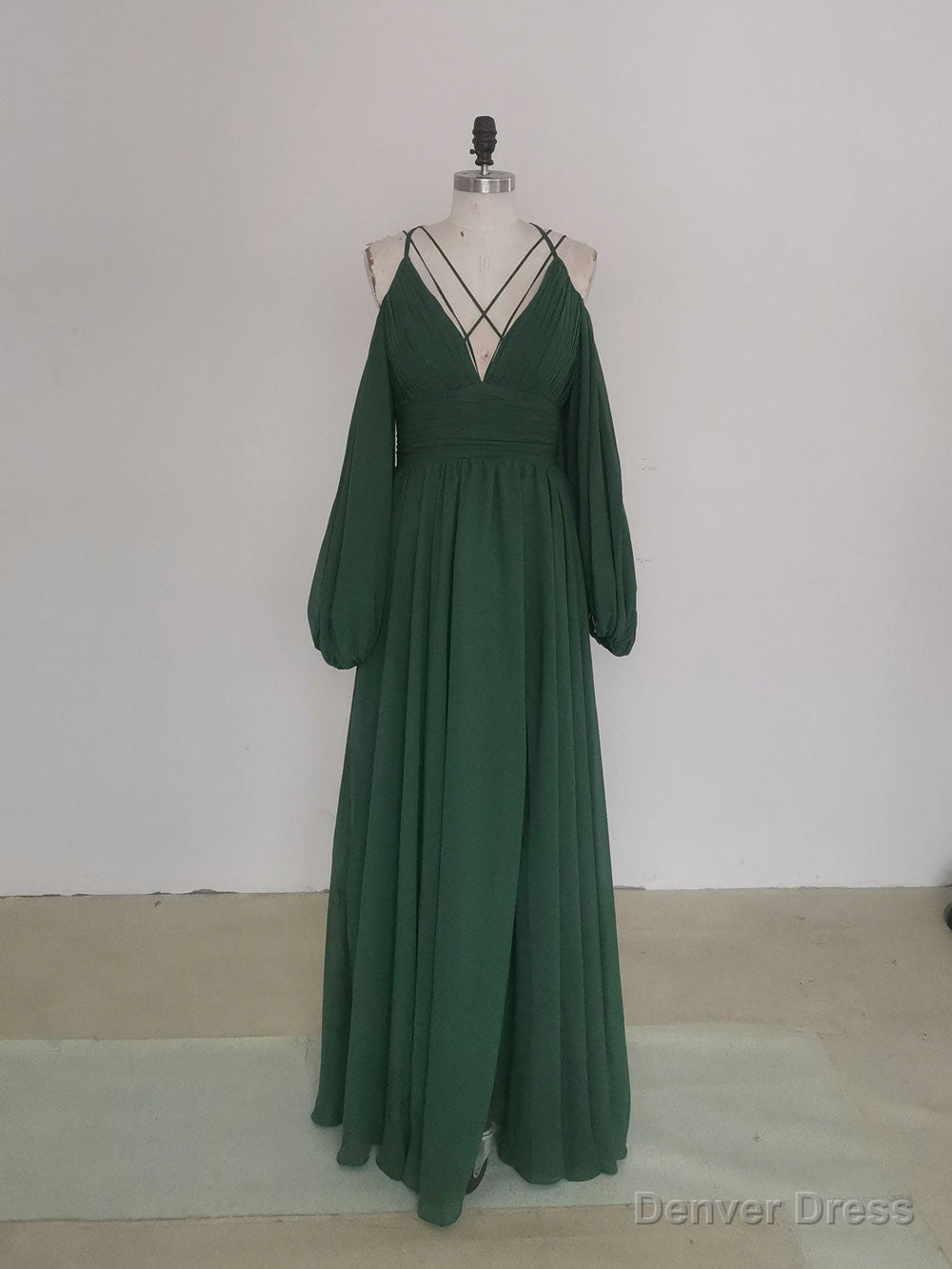 Simple A line Green Chiffon Long Prom Dress, Green Bridesmaid Dress