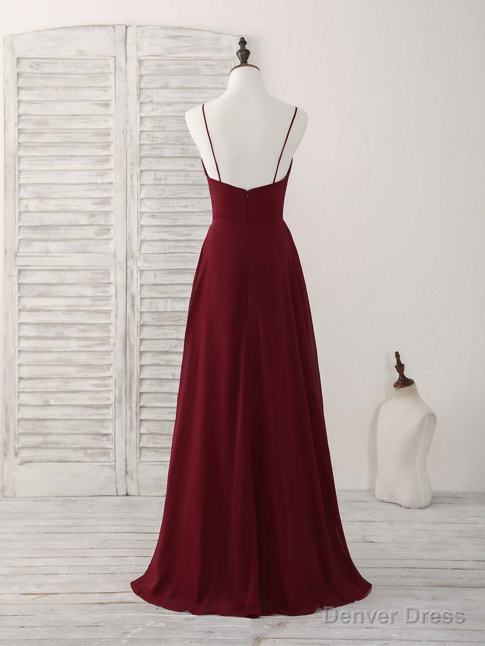 Simple Burgundy V Neck Chiffon Long Prom Dress, Bridesmaid Dress