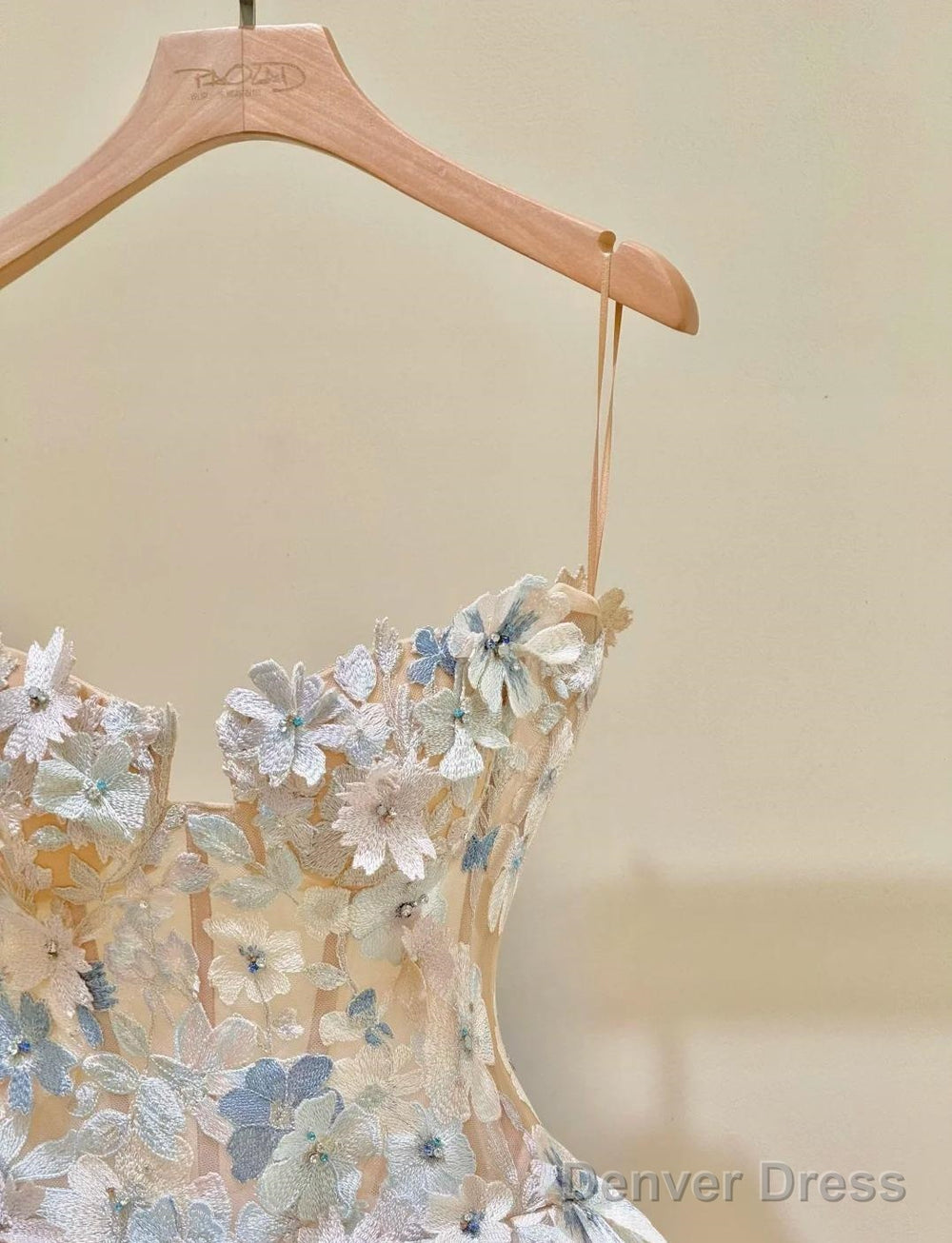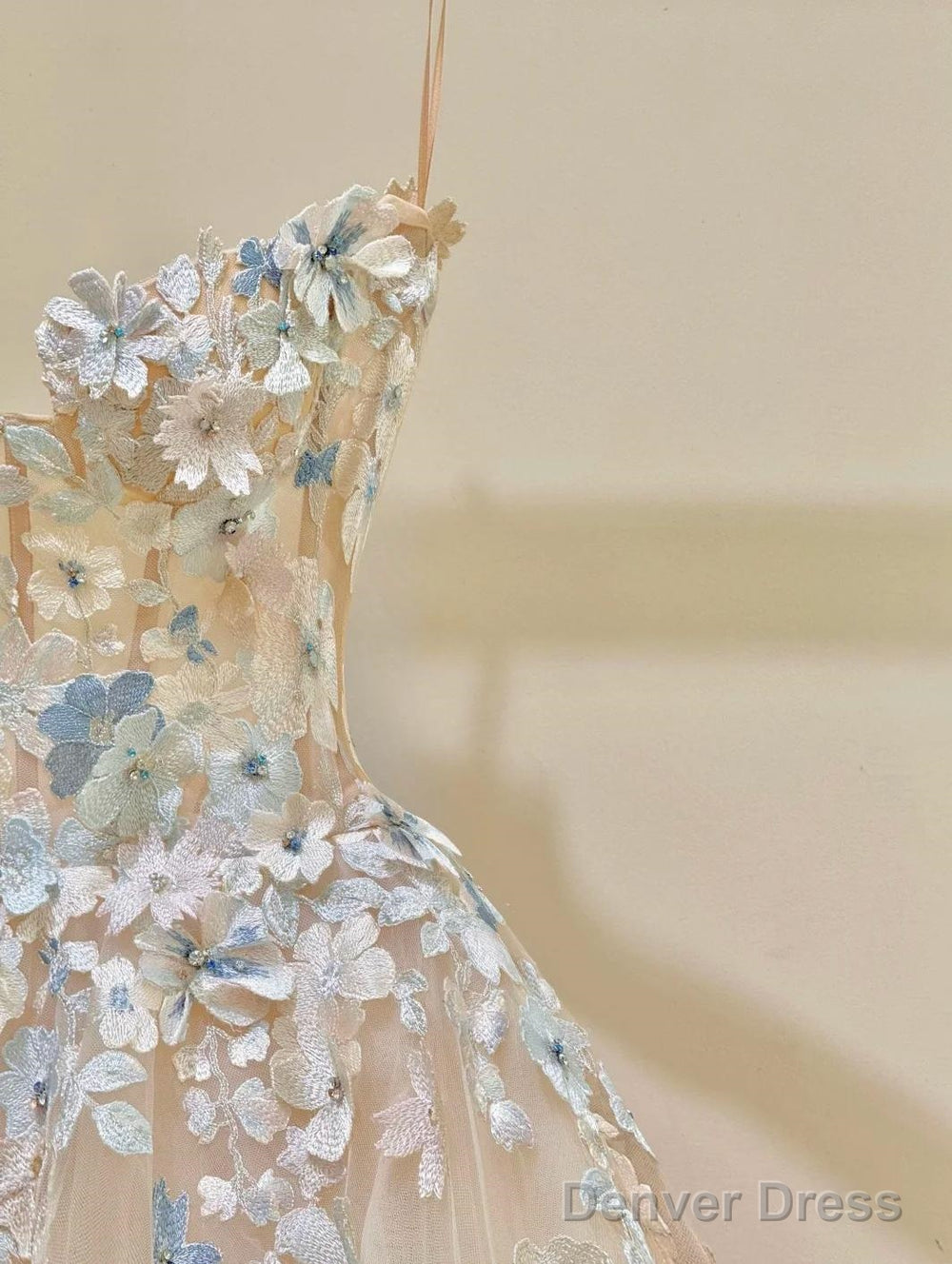 Simple Champagne A-Line Spaghetti Straps Tulle Applique Long Prom Dress Sweet Wedding Dress