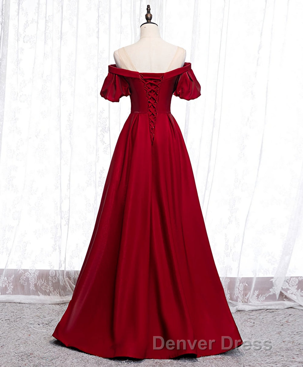 Simple Sweetheart Burgundy Satin Long Prom Dresses, Burgundy Evening Dresses